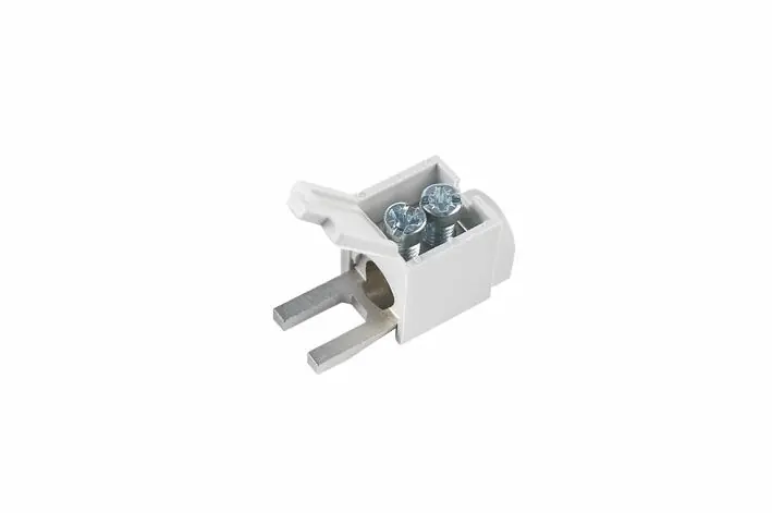Svorka připojovací typ AS/25-GN – tvar konektoru – vidlička, krytá, min. připojitelný průřez vodiče 6mm2 a max. 25mm2, jmenovitý proud 100A (kódové označení výrobce 2010103). Rozměry vidličky jsou 11×2,5x13mm, vestavná šířka 15mm.Modulové přístroje mají od výroby omezené možnosti připojení. Proto byly vyvinuty přístrojové připojovací svorky AS, které vyřeší všechny potřeby pro montáž. Buďto umožňují připojení vodiče o větším průřezu a nebo rozšiřují počet připojovacích míst, respektive umožňují připojení Al vodiče. Ve většině případů se montují do horního přípojného místa modulového přístroje a tím nezabírají spodní svorku. Varianty v plastovém pouzdře zajistí ochranu před nebezpečným dotykem živých částí. Vestavná šířka je max. 17,8 mm (1modulové místo). Dostupné jsou jak typy s kolíkem, tak typy s vidličkou.