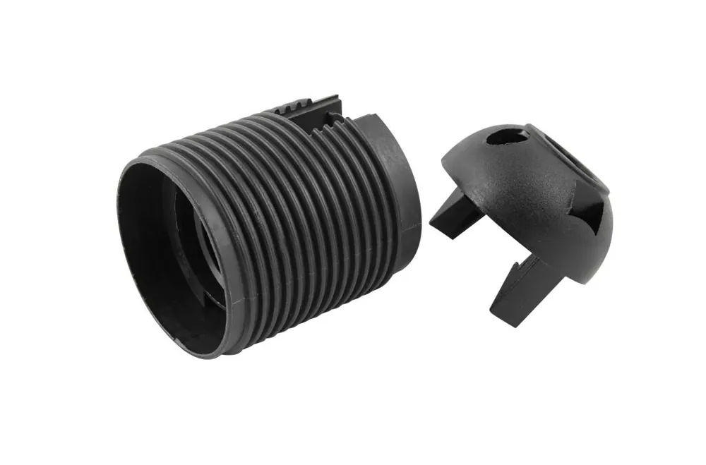 Objímka plastová E27Jde o nejklasičtější šroubovací žárovkový Edisonův závit o vnějším průměru 27 mm. Používá se pro běžné žárovky, úsporné žárovky, výbojky i světelné zdroje s LED., typ: 81 (1352-13000) – černá, s vnějším závitem, s čepičkou. (T210+100/ASFV)