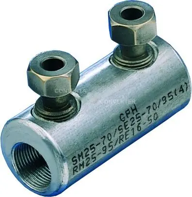 Šroubový spojovač 625 SV-T-V-K.0,6/1 kVprůměr: 10-35 mm²materiál:tělo spojovače: legovaný hliníkšrouby: mosaz, galvanicky pocínovanápovrchová úprava:tělo spojovače: galvanicky pocínovanéšrouby: se dvěma trhacími šrouby