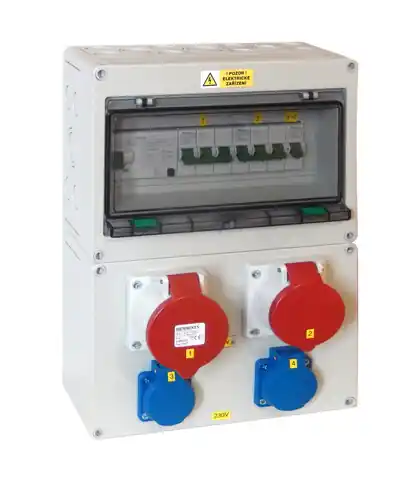 Technické parametry:Barva: šedáJmenovité napětí: 400 VJmenovitý proud: 32 AProvedení:nástěnnéZásuvky: 2x 230V, 1x 400V 16A, 1x400V 32AJištění: 1x B16/1, 1x C16/3, 1x C32/3Proudový chránič: 40A/4p/30mARozměry: 255 x 360 x 175 mm Stupeň krytí: IP44