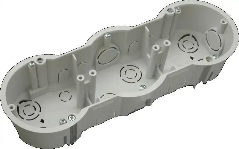 KUP 68LP/3 SK Krabice do sádrokartonu trojnásobná do dutých příček v souladu s EN 60670-1materiál PP – samozhášivý 30 s teplotní odolnost: od -5° C až +60° C rozměr ⌀ 73 x 215 mmhloubka stěny duté příčky 5 – 30 mmmontážní otvor⌀ 68 mmvstupní otvory 6x Ø21/12, 4x Ø12, 4x Ø21, 8x(10×18) 400 V 850 °C balení 80 ks