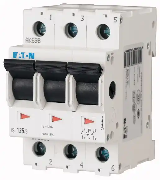 Hlavní vypínač IS-63/3.jmenovitý proud: 63 Apočet pólů: 3slouží jako hlavní vypínač rozvaděčůjmenovité napětí 240/415 V ACzkratová odolnost: 12,5 kAstrana síťového připojení libovolnákategorie užití AC-22stupeň krytí IP10průřez připojovaných vodičů 2,5-50 mm²libovolná montážní polohaHlavní vypínač s odpojovací funkcí, provedení dle normy IEC/EN 60947-3, vysoká odolnost proti opotřebení kontaktů, skokové zapínání, barva prvku černá, průřez svorky 50 mm², sběrnice kompatibilní s Xpole ochrannými spínači při použití čelisťové svorky v kombinaci se standardní vidlicovou přípojnicí.