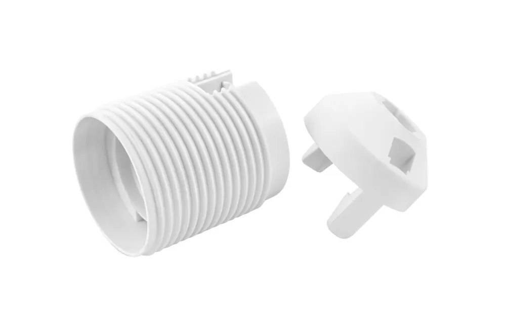Objímka plastová E27Jde o nejklasičtější šroubovací žárovkový Edisonův závit o vnějším průměru 27 mm. Používá se pro běžné žárovky, úsporné žárovky, výbojky i světelné zdroje s LED., typ: 81 (1352-13400) – bílá, s vnějším závitem, s čepičkou. (T210+100/ASFV)